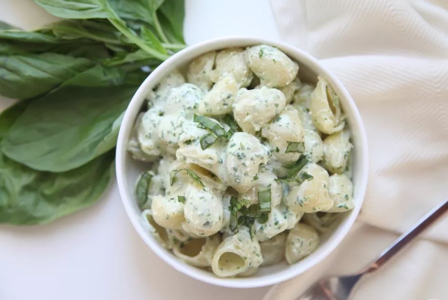 Βάλτε να βράσει μια κατσαρόλα με αλατισμένο νερό. Προσθέστε τα ζυμαρικά και μαγειρέψτε σύμφωνα με τις οδηγίες συσκευασίας. Αδειάστε τα μαγειρεμένα ζυμαρικά σε ένα σουρωτήρι και τα ανακινήστε καλά για να απομακρύνετε το νερό. Σε ένα μεγάλο μπολ, προσθέστε σιγά-σιγά τη σάλτσα φετα-γιαούρτι στα ζυμαρικά (προσθέτοντας το πολύ γρήγορα μπορεί να πήξει η σάλτσα).