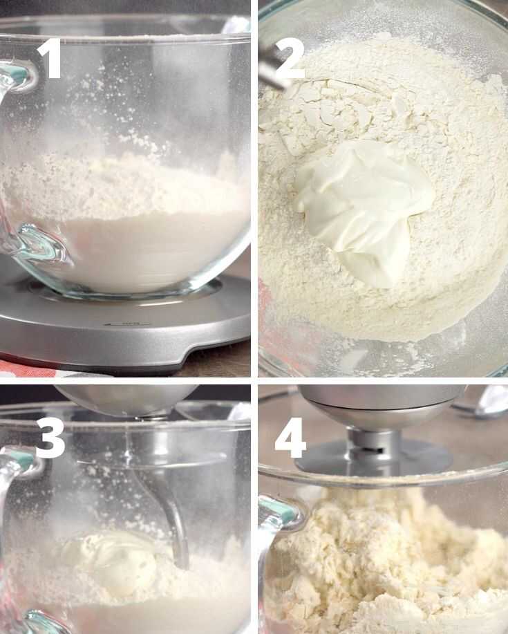 Προσθέστε το αλεύρι και το γιαούρτι σε ένα μίξερ βάσης.