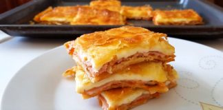 Ψήνουμε στους 180 βαθμούς σε προθερμασμένο φούρνο για 40 λεπτά περίπου, ανάλογα με το φούρνο, μέχρι να γίνει ωραία χρυσαφένια κρούστα.