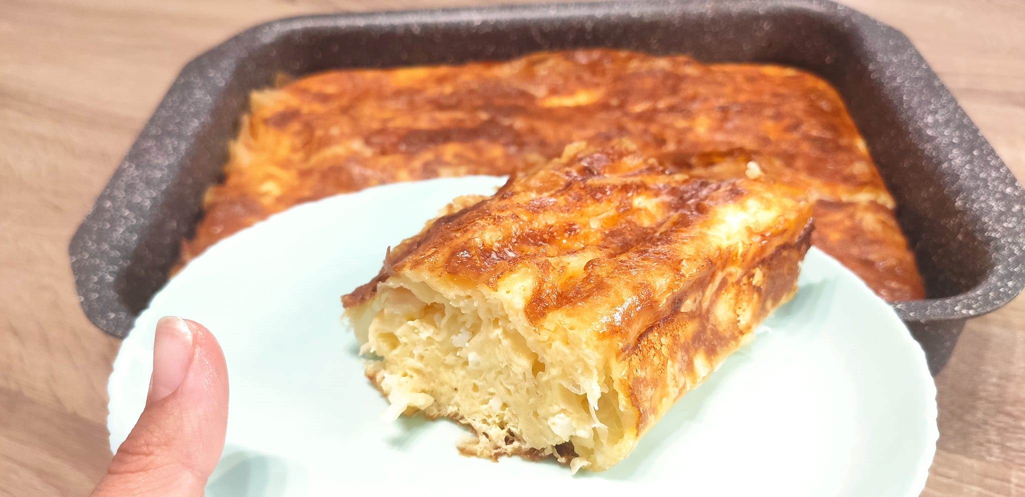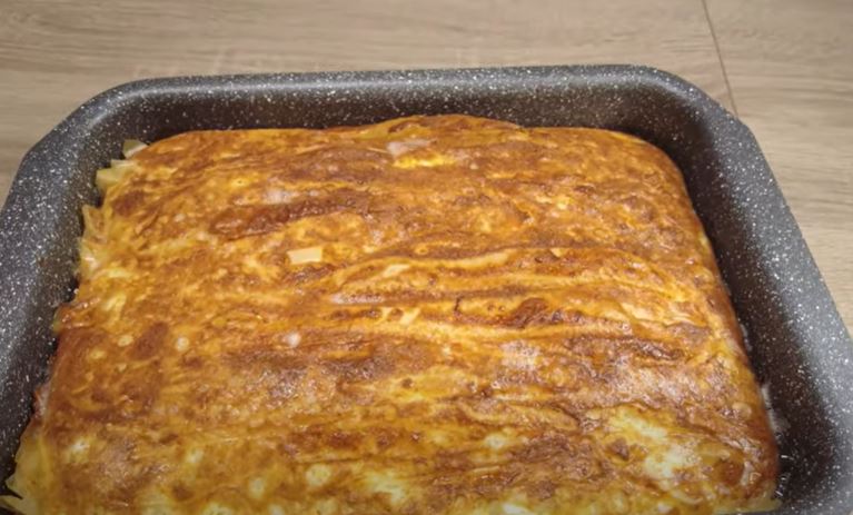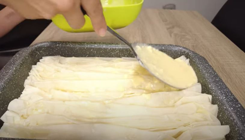 Πρέπει να μείνει περίπου το 1/3 του μείγματος και περιχύνεται πάνω από την πίτα.