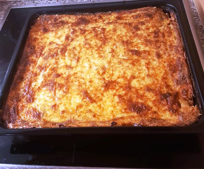 5) Ψήστε το μουσακά σε προθερμασμένο φούρνο στους 200 βαθμούς Κελσίου για 40 λεπτά. Ο χρόνος ψησίματος εξαρτάται από το φούρνο σας. Αφαιρέστε από το φούρνο και αφήστε το να κρυώσει ελαφρώς.
