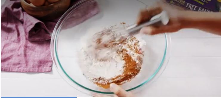 Σε ένα μεγάλο μπολ (το 1ο Μπολ), χτυπάω μαζί το αλεύρι, το μπέικιν πάουντερ, την κανέλα, το αλάτι και το μοσχοκάρυδο. Αυτά είναι τα στερεά μου υλικά. Σε ένα άλλο μεγάλο μπολ (το 2ο Μπολ), χρησιμοποιώντας το μίξερ, χτυπάω μαζί το λιωμένο βούτυρο με τη λευκή και τη μαύρη ζάχαρη μέχρι να ομογενοποιηθούν πλήρως. Στη συνέχεια, προσθέτω ένα-ένα τα αυγά, και μετά βάζω και τη βανίλια.