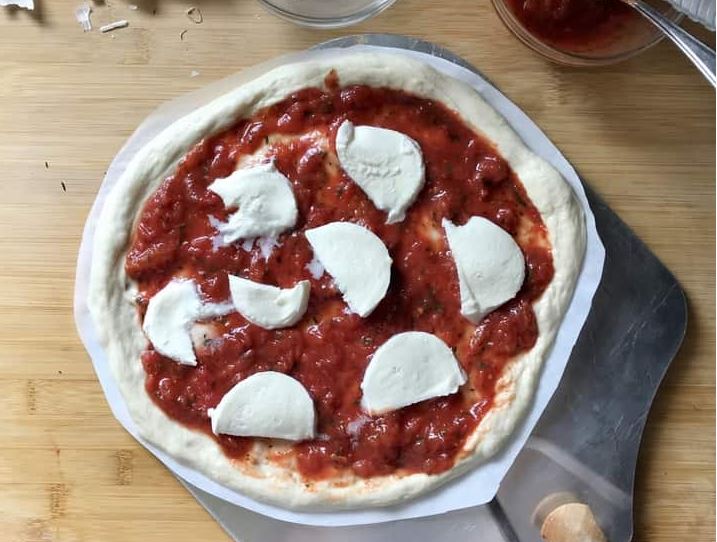 ¾ – 1 φλιτζάνι σπιτική σάλτσα πίτσας.