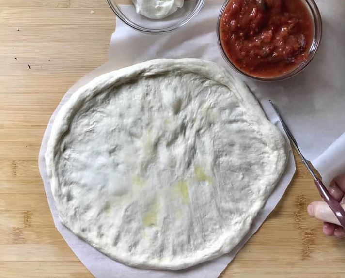 ½ σπιτική ζύμη πίτσας 220-275 γραμμάρια ζύμης πίτσας Χρησιμοποιώ τη συνταγή της μαμάς μου.