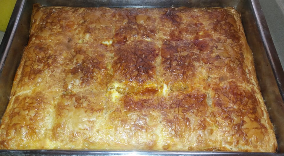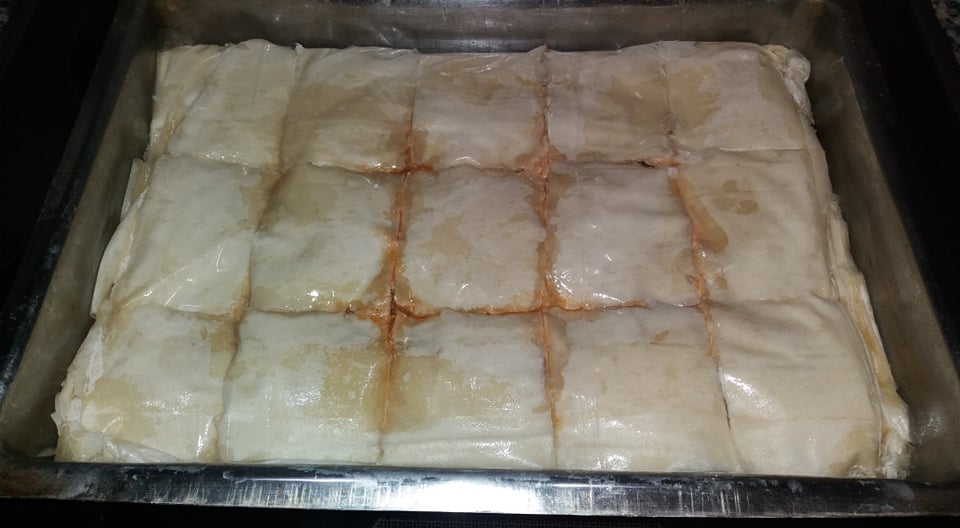 Σ ένα μπολ χτυπάμε το αυγό με το γάλα και περιχύνουμε την πίτα μας κουταλιά κουταλιά σε κάθε κομμάτι. Ψήνουμε σε προθερμασμένο φούρνο στους 180 βαθμούς για 40 με 45 λεπτά στις αντιστάσεις.