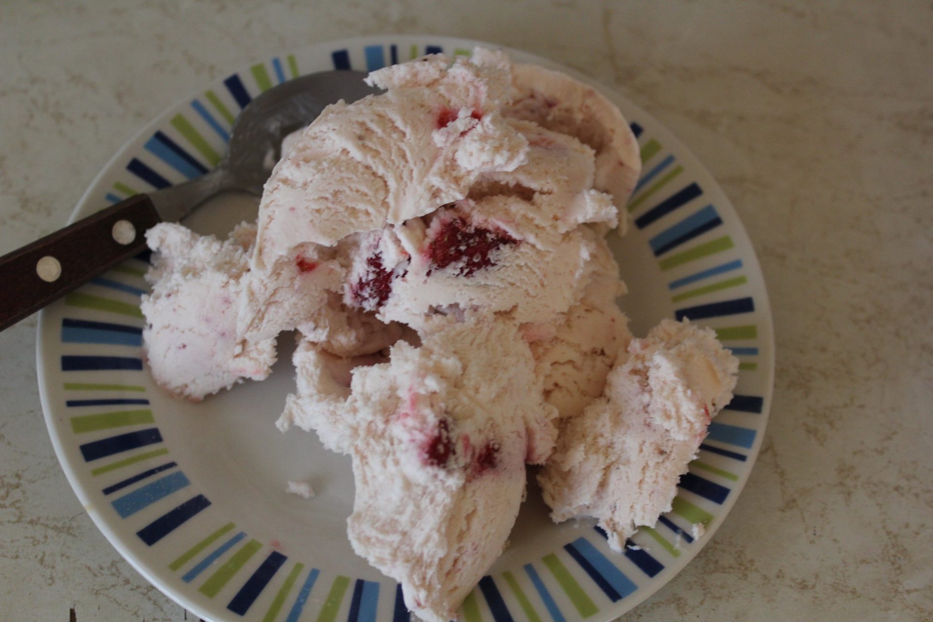 Παίρνω μερικές φράουλες ,βασικά όσες θέλουμε τις λιώνουμε στο μπλέντερ και τις προσθέτουμε στο μείγμα μας.Κόβουμε τις υπόλοιπες φράουλες που έχουμε κρατήσει και τις προσθέτουμε κι αυτές μέσα.