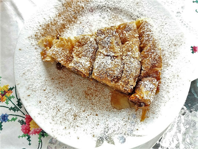 Όταν κρυώσει η πίτα μας βράζουμε το σιρόπι για 6-7 λ από την ώρα βρασμού και ρίχνουμε κουταλιά- κουταλιά το σιρόπι μας.