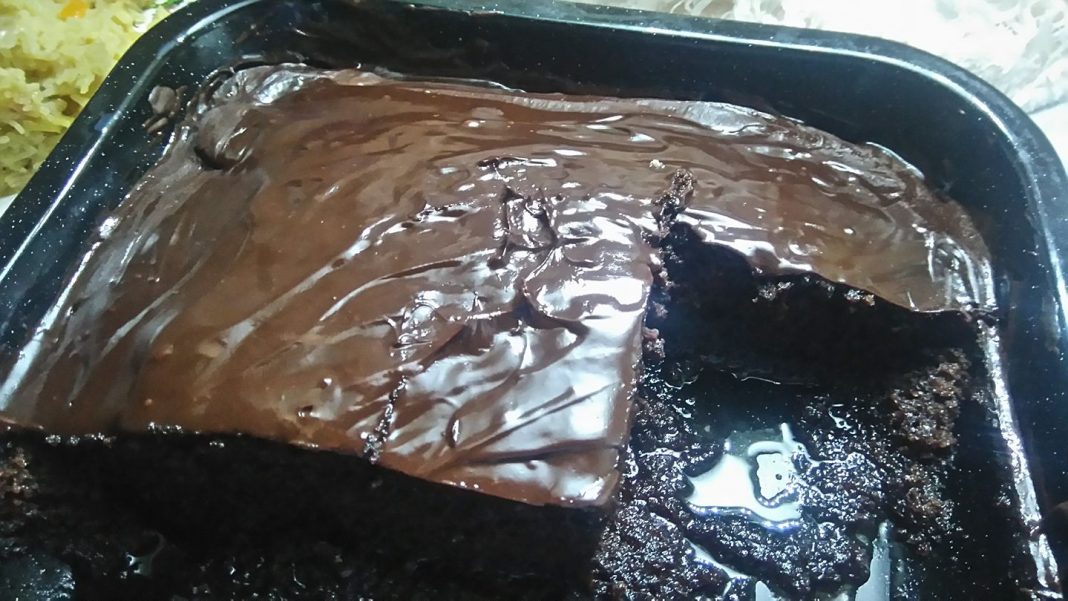 Όταν ψηθεί η σοκολατοπιτα, την βγάζουμε από τον φούρνο και την περιμένουμε με το κρύο σιρόπι.