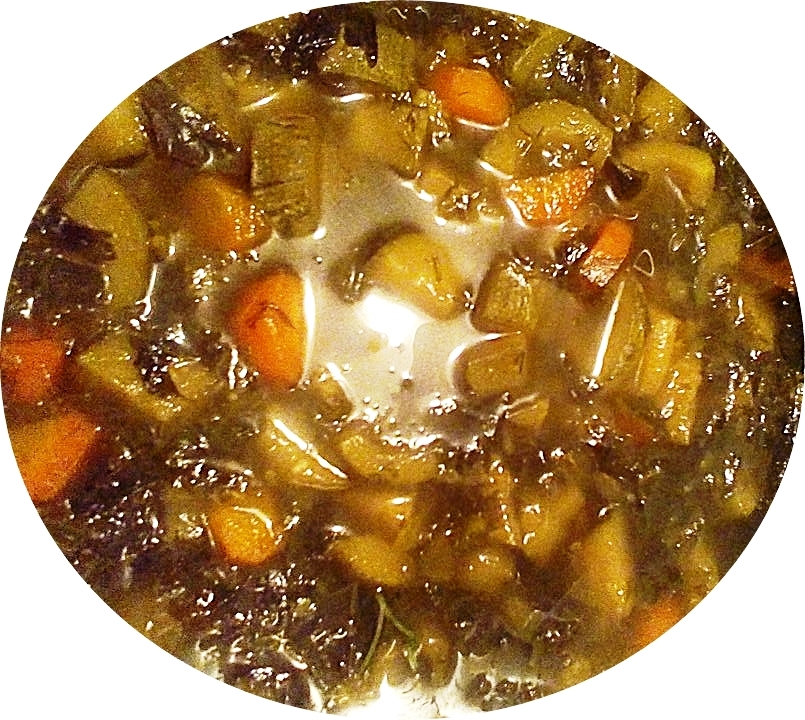 Τα ψιλοκόβουμε όλα τα λαχανικά και τα προσθέτουμε στην κατσαρόλα με αλάτι , και νεράκι έως να τα σκεπάσει