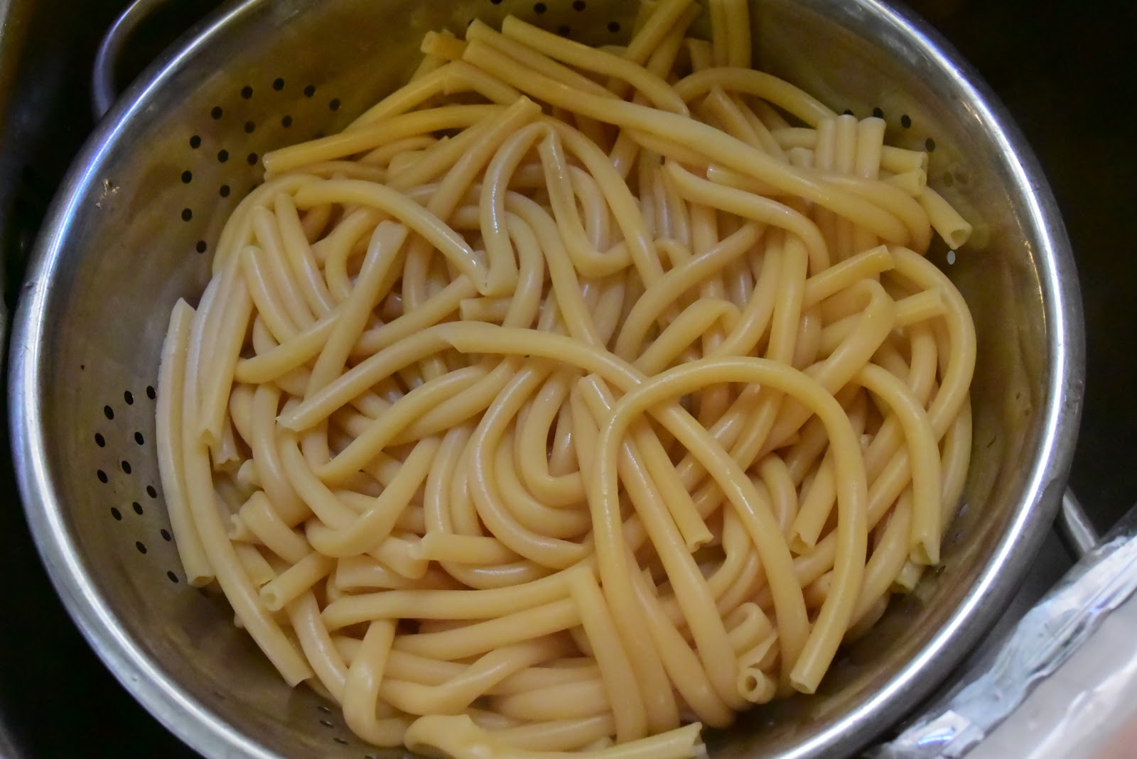 Βράζουμε τα μακαρόνια για παστίτσιο κανονικά, φροντίζοντας να κρατάνε λίγο (al dente). Τα στραγγίζουμε καλά.