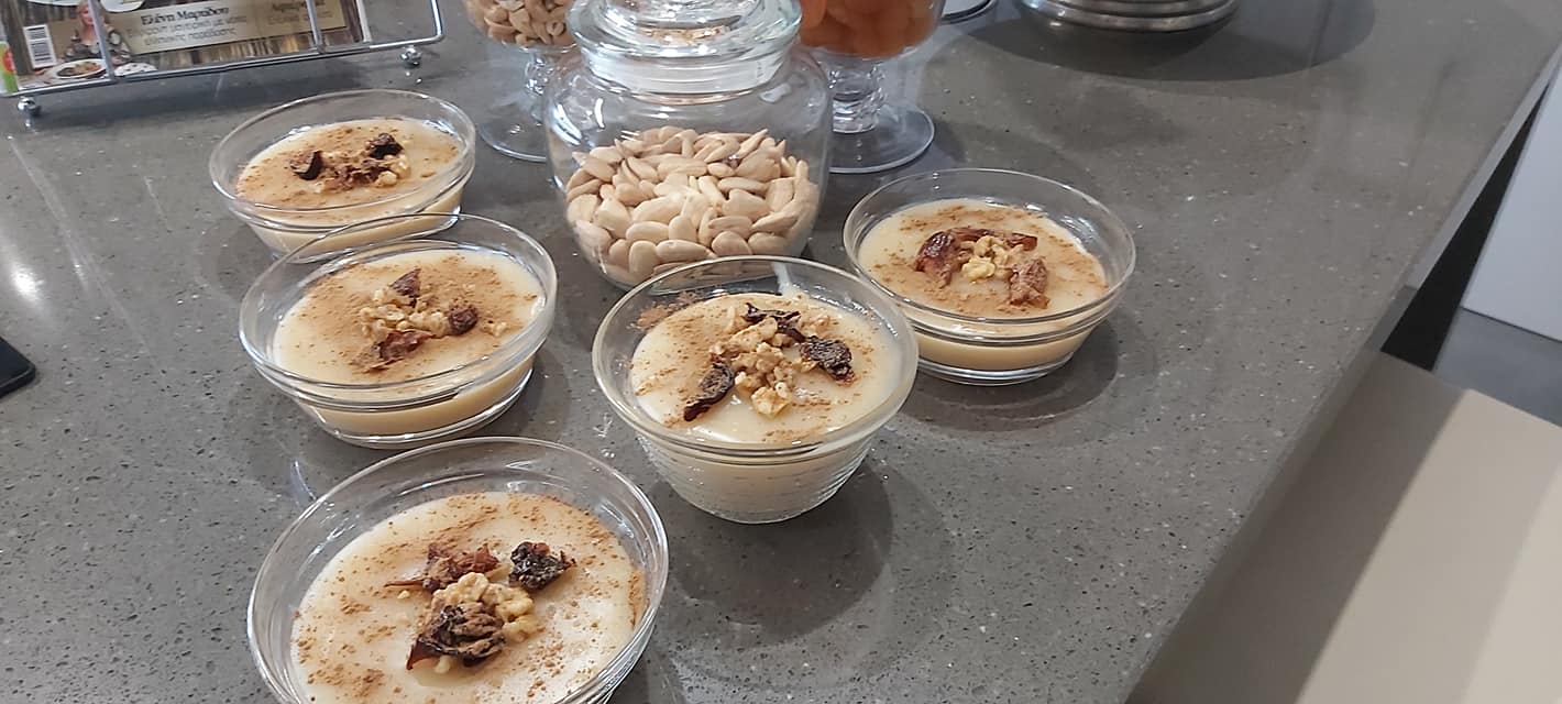 Μυστικά: Αν θέλετε προσθέστε μέσα στην κρέμα σταφίδα κορινθιακη (μαύρη) και από πάνω σουσάμι, κανέλα και καρύδια.