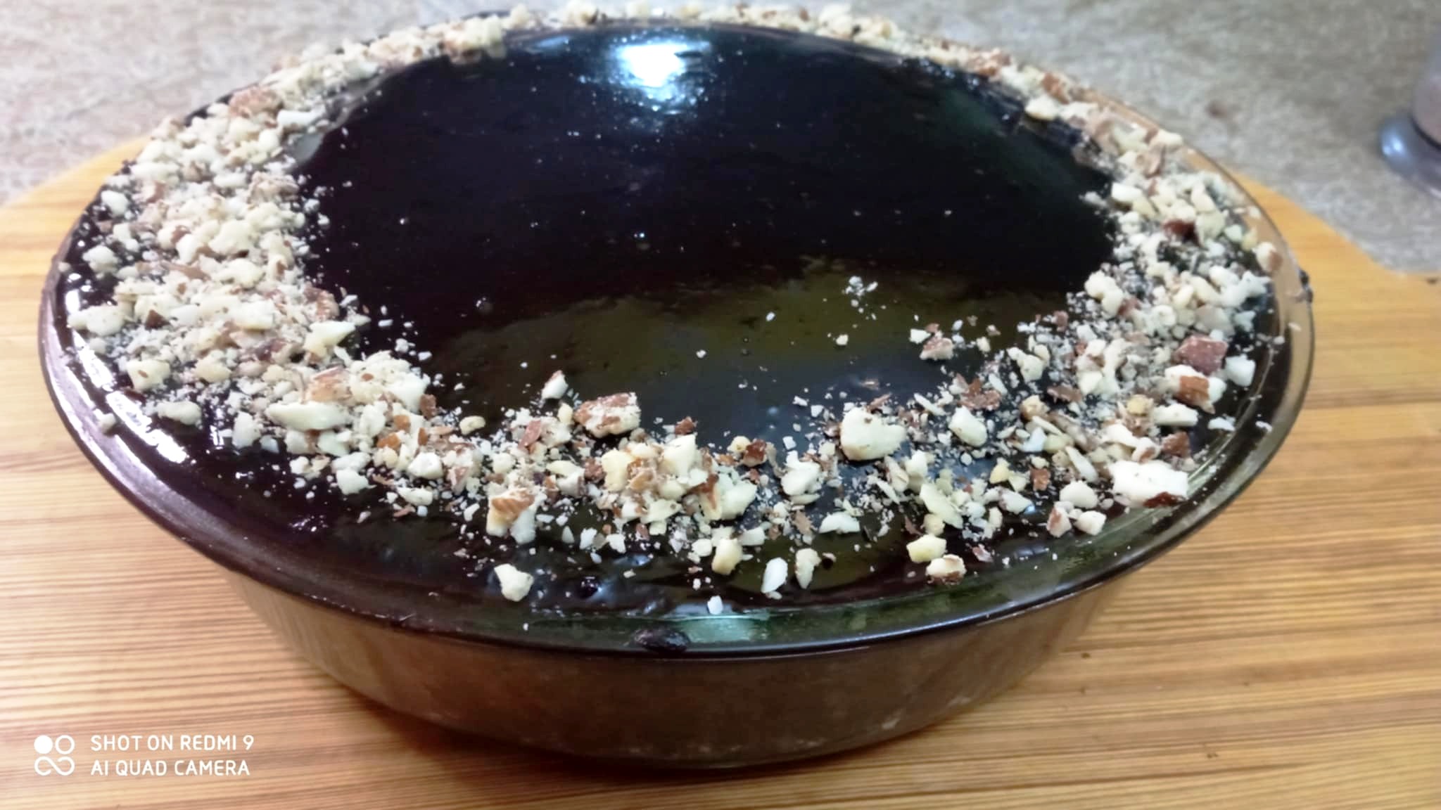 Μόλις κρυώσει τελείως το κέικ, περιχύνουμε με το γλάσο.