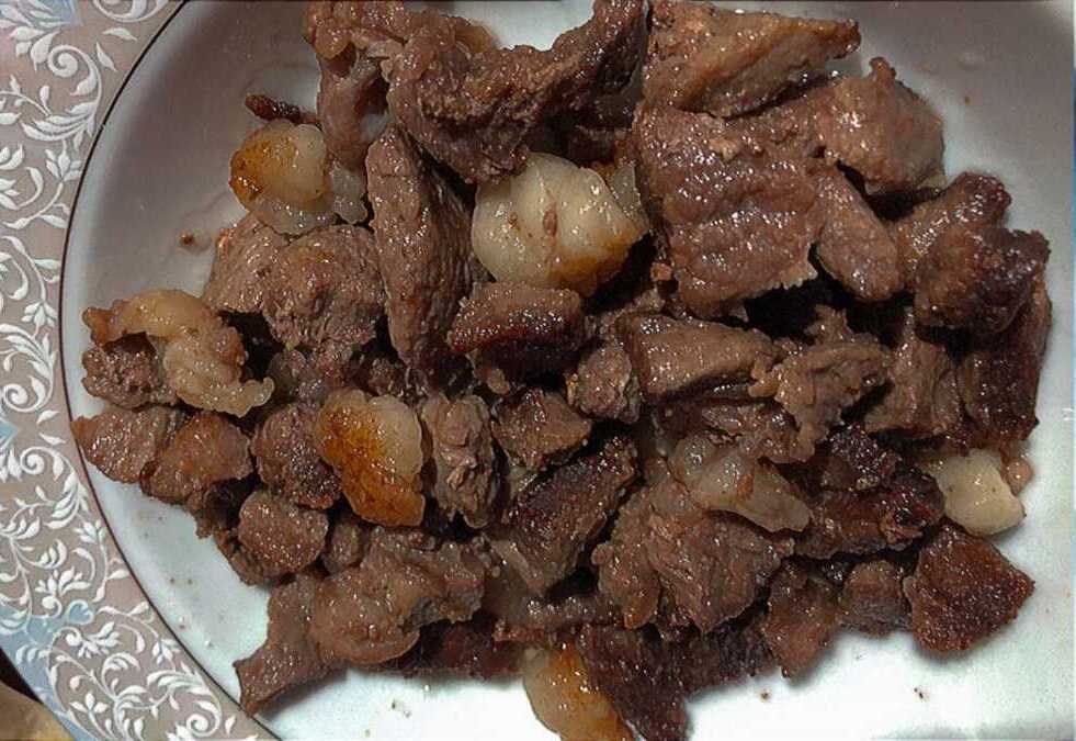Πέρνουμε ένα μεγάλο τηγάνι, ζεσταίνουμε το λάδι στο μάτι της κουζίνας, αφαιρούμε τα κομμάτια του κρέατος από την κατσαρόλα και τα βάζουμε στο λάδι.