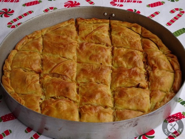 Για τις ανάγκες αυτού του μεγέθους ταψιού οι ποσότητες αλευριού είναι τροποποιημένες, επίσης υπάρχει μόνο αλεύρι σκληρό για λόγους έλλειψης άλλου τη συγκεκριμένη ημέρα. Το αποτέλεσμα δεν αλλάζει ιδιαίτερα.