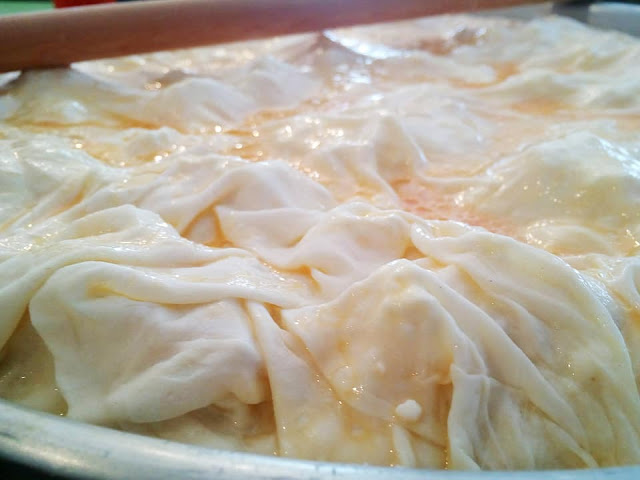 Κάνουμε το ίδιο μέχρι να τελειώσουν όλα τα φύλλα και η γέμιση,κρατάμε λίγο από τα αυγά.