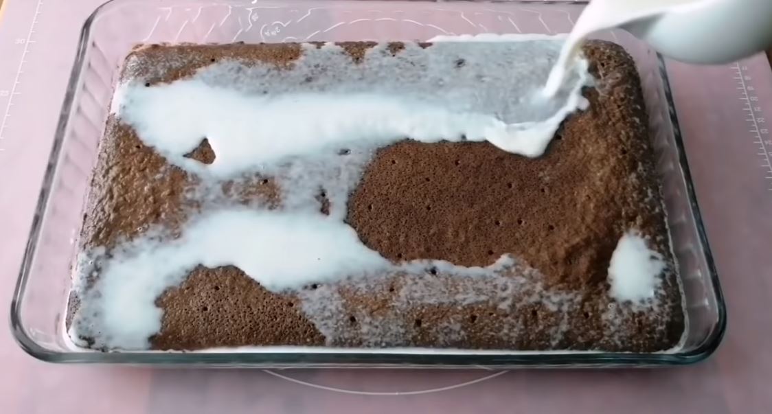 Μουσκευουμε με ένα και μισό ποτήρι γάλα όλο το κέικ