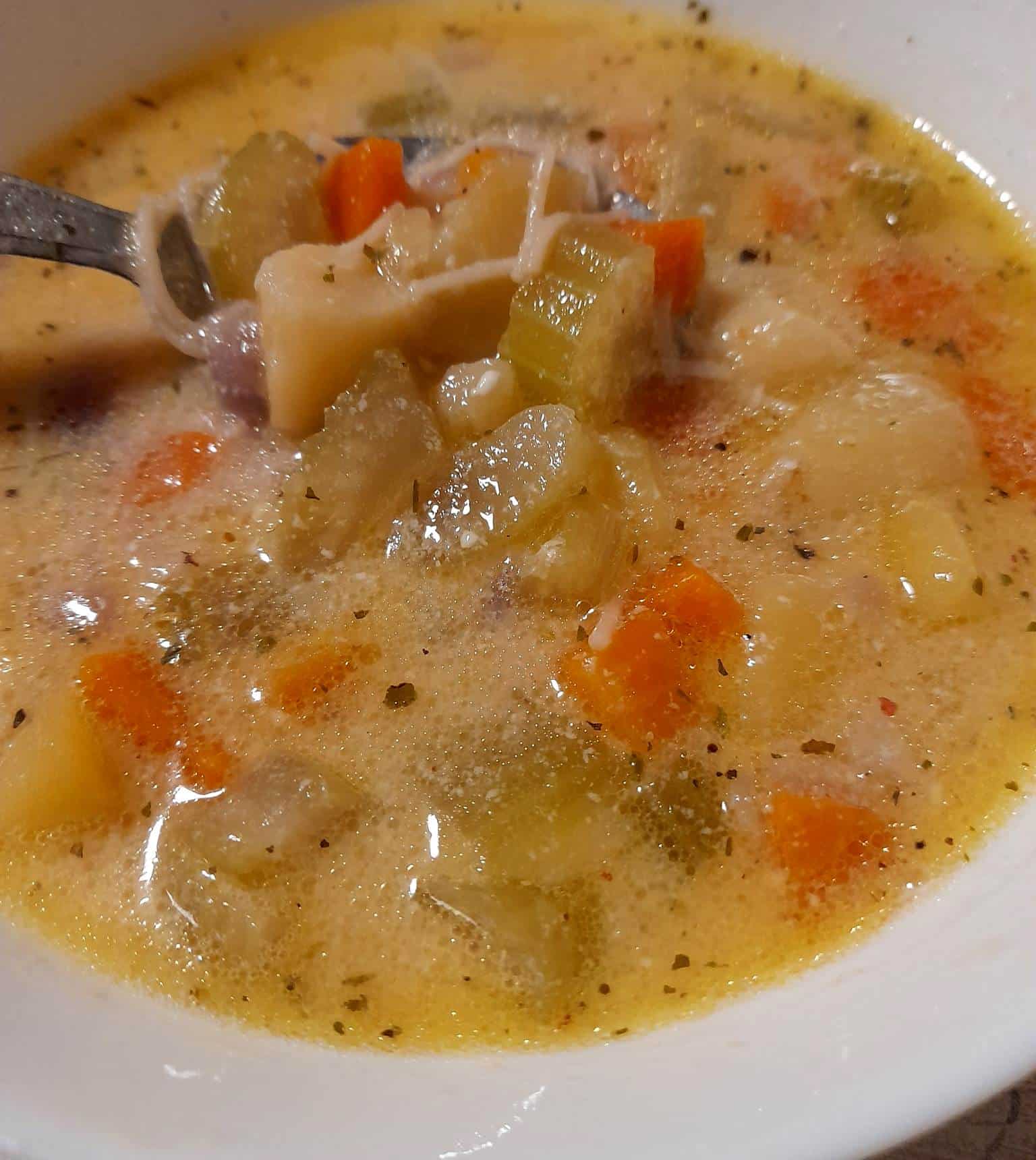 Για βραδινό έφτιαξα μια πολύ νόστιμη και θρεπτική σούπα λαχανικών από πατάτες, παστινάκια, καρότα, κόκκινα κρεμμύδια και σέλινο.