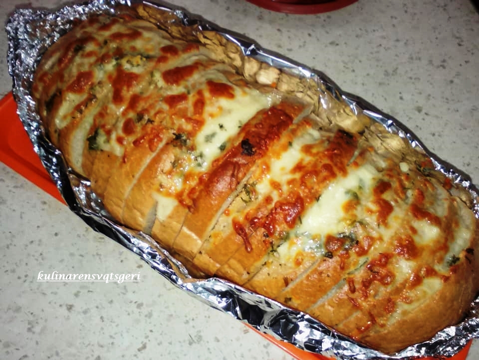 Το ψωμί τοποθετείται κομμενο σε φέτες όχι μεχρι κάτω σε αλουμινόχαρτο.