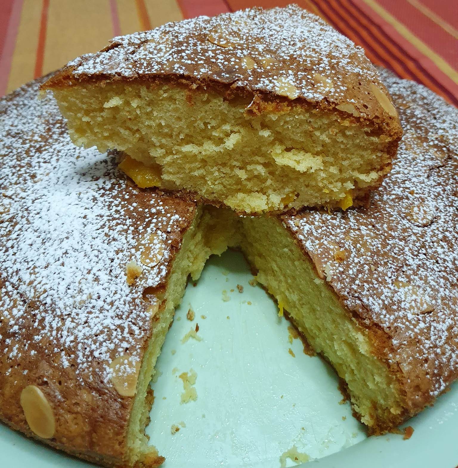 Αδειάζουμε το μείγμα στη φόρμα του κέικ και διακοσμουμε με φιλε αμυγδάλου.