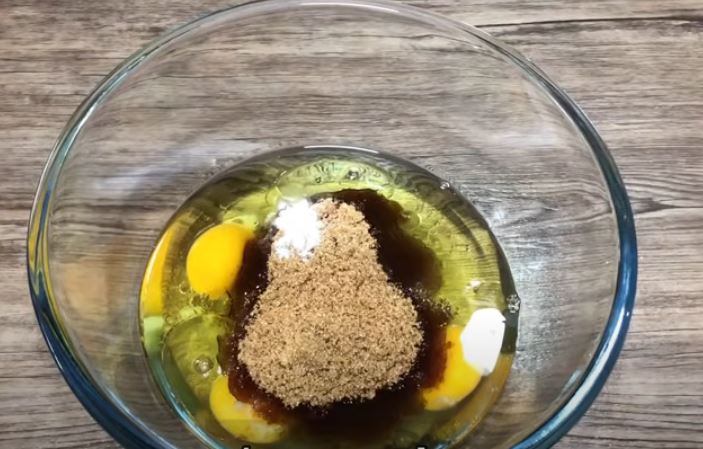 Σπάμε τ αυγά σ ένα μπολ,προσθέτουμε το λάδι τη ζάχαρη το αλάτι και ανακατεύουμε πολύ καλά με το σύρμα.