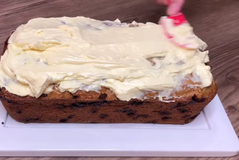 Ξεφορμάρουμε το κέικ και το καλύπτουμε με την κρέμα τυριού σε όλη την επιφάνεια του.