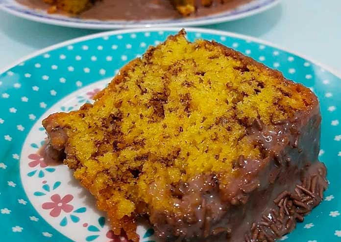 Μοιράζουμε τη ζύμη σε λαδωμένο παραλληλόγραμμο σχήμα και ψήνουμε σε μέτριο φούρνο (180ºC) μέχρι να ροδίσει ελαφρώς το κέικ ή βαζουμε μια οδοντογλυφίδα στο κέικ