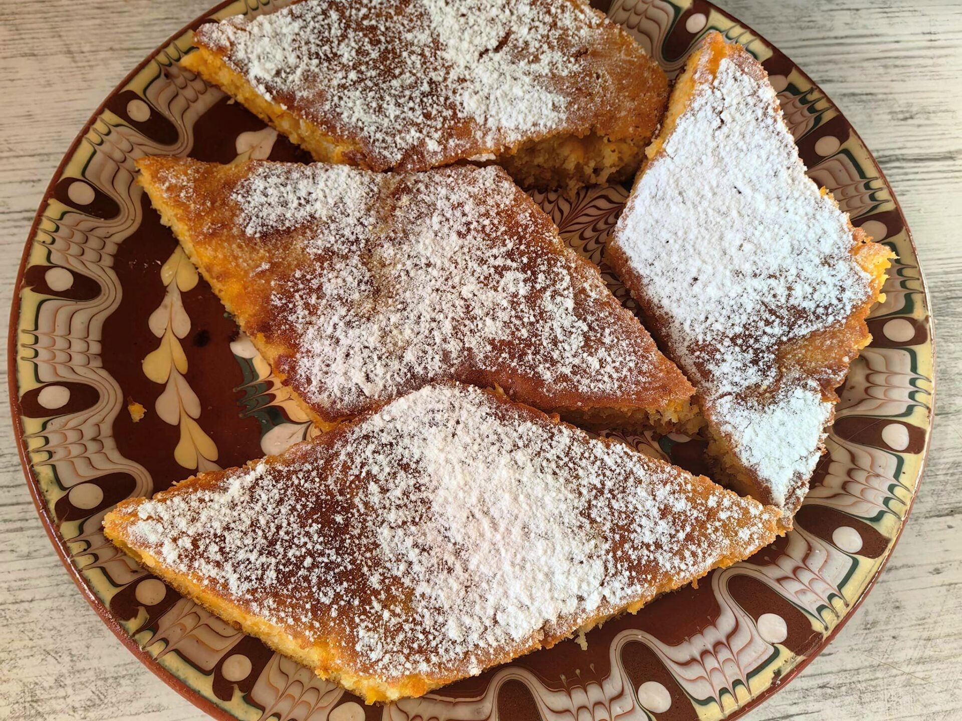 Ψύξτε ελαφρά και κόψτε, πασπαλίστε με ζάχαρη άχνη.