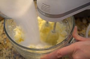Σε ένα μεγάλο μπολ, χτυπήστε το βούτυρο και την ζάχαρη μέχρι να γίνουν κρέμα.