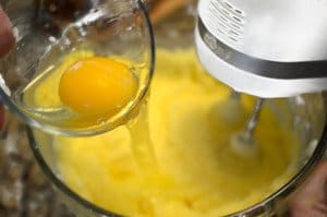 Προσθέστε αυγά, ένα κάθε φορά, χτυπάτε καλά μετά από κάθε προσθήκη.