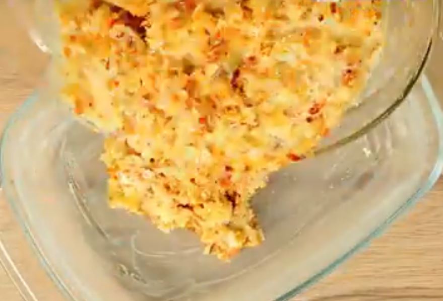 Επικαλύψτε το εσωτερικό του ταψιού με βούτυρο. Προσθέστε το μείγμα του τριμμένου φύλλου,