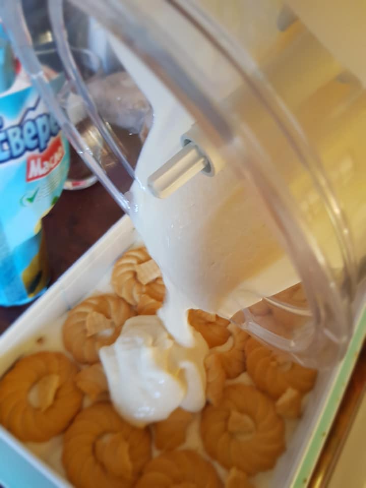 Έβαλα άλλα από πάνω μισά μπισκότα και την υπόλοιπη κρέμα,