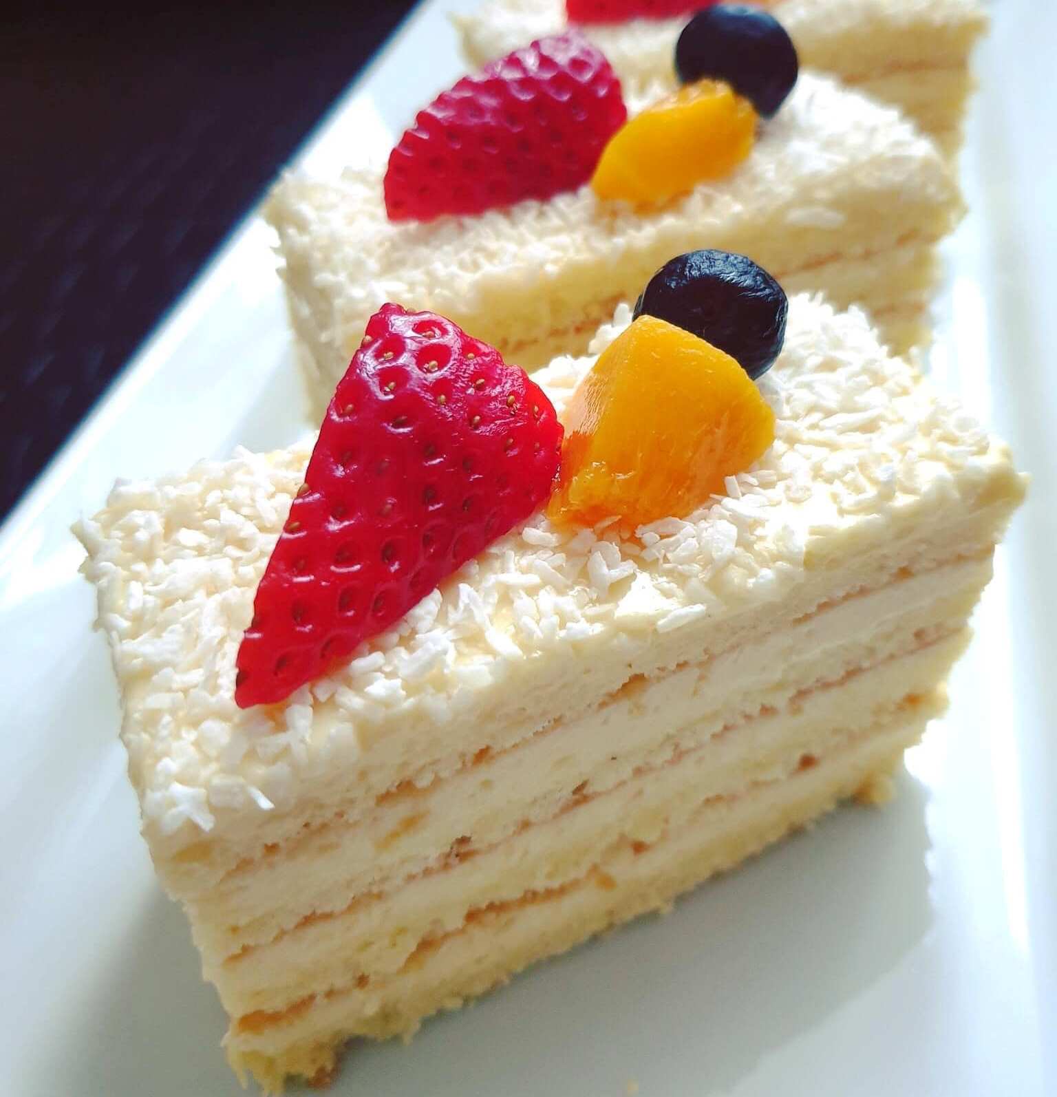 Βάζουμε σε μια κατσαρόλα το αλεύρι με λίγο αλάτι και τη ζάχαρη, μετά προσθέτουμε σταδιακά το γάλα και βάζουμε σε μέτρια φωτιά, όταν πήξει, αποσύρουμε από τη φωτιά, αφήνουμε να κρυώσει και όταν έρθει σε θερμοκρασία δωματίου προσθέτουμε το ξύσμα λεμονιού και το χυμό λεμονιού, ανακατεύουμε και προσθέτουμε το βούτυρο και συνεχίζουμε το ανακάτεμα μέχρι να ενσωματωθούν όλα καλά. Γεμίζουμε τα φύλλα παντεσπανι ενδιαμεσα και κρατάμε και κρέμα για το πάνω φύλλο και πασπαλίζουμε με καρύδα.