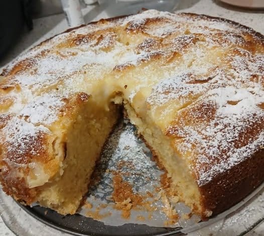 Κόβουμε τα μήλα και τα αλευρωνουμε τα ριχνουμε στο μείγμα απλώνουμε ομοιόμορφα σε ταψάκι νουμ 28 που έχουμε βουτυρώστε καλά από πάνω βάζουμε την κρέμα με ένα κορνε κάνοντας γραμμές διαγώνια εγώ δεν είχα κορνε και την έβαλα με το κουτάλι διάσπαρτα ψήνουμε στους 180 βαθμούς για 40- 50λεπτα ανάλογα τον φούρνο.