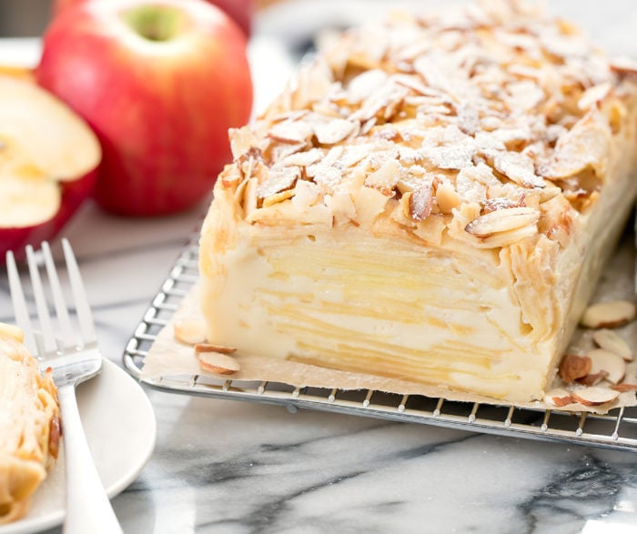 Τοποθετήστε την φόρμα στο μεσαίο τμήμα του φούρνου σας και ψήστε για 40 λεπτά. Καλύψτε το πάνω μέρος του κέικ ελαφρά με ένα αλουμινόχαρτο και ψήστε άλλα 10-20 λεπτά ή μέχρι να γίνει το κέικ. Για να ελέγξετε εάν έχει γίνει κέικ, κολλήστε μια οδοντογλυφίδα στο κέικ και το μείγμα δεν πρέπει να είναι πλέον υγρό. Ο χρόνος ψησίματος μπορεί να διαφέρει ανάλογα με την ποσότητα των μήλων που χρησιμοποιήσατε και την ποσότητα υγρασίας στα μήλα.