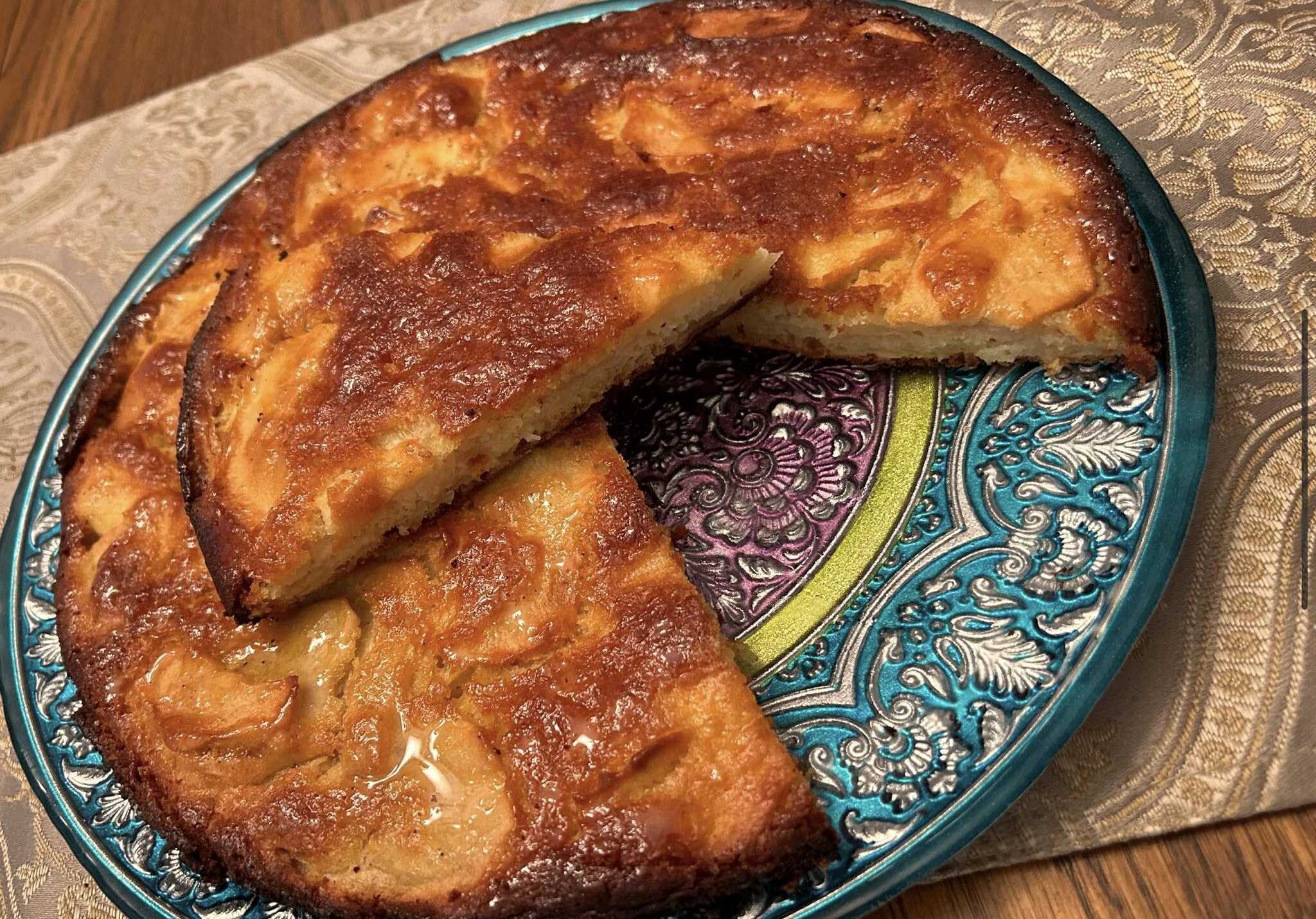 Σε ένα Μπολ χτυπάμε τα αυγά το αλάτι τη ζάχαρη με τα υπόλοιπα υλικά και τέλος προσθέτουμε το αλεύρι με το μπέικιν πάουντερ τα χτυπάμε για λίγο με σύρμα . Έχουμε καθαρίσει και κόψει τα μήλα μας Στον τρίφτη σε πολύ λεπτές φετούλες προσθέτουμε μισό λεμόνι και τα προσθέτουμε όλα μαζί στο μείγμα που έχουμε ετοιμάσει . Τα ανακατεύουμε όλα μαζί και τα προσθέτουμε στην φόρμα μας που έχουμε ετοιμάσει τα στρώνουμε καλά να πάνε παντού .
