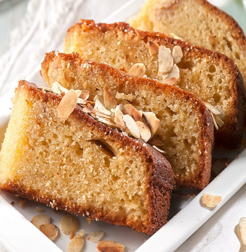 Αφήστε το κέϊκ να κρυώσει τελείως πριν το βγάλετε. Ραντίστε μέλι από πάνω και πασπαλίστε με τα ψημένα αμύγδαλα.