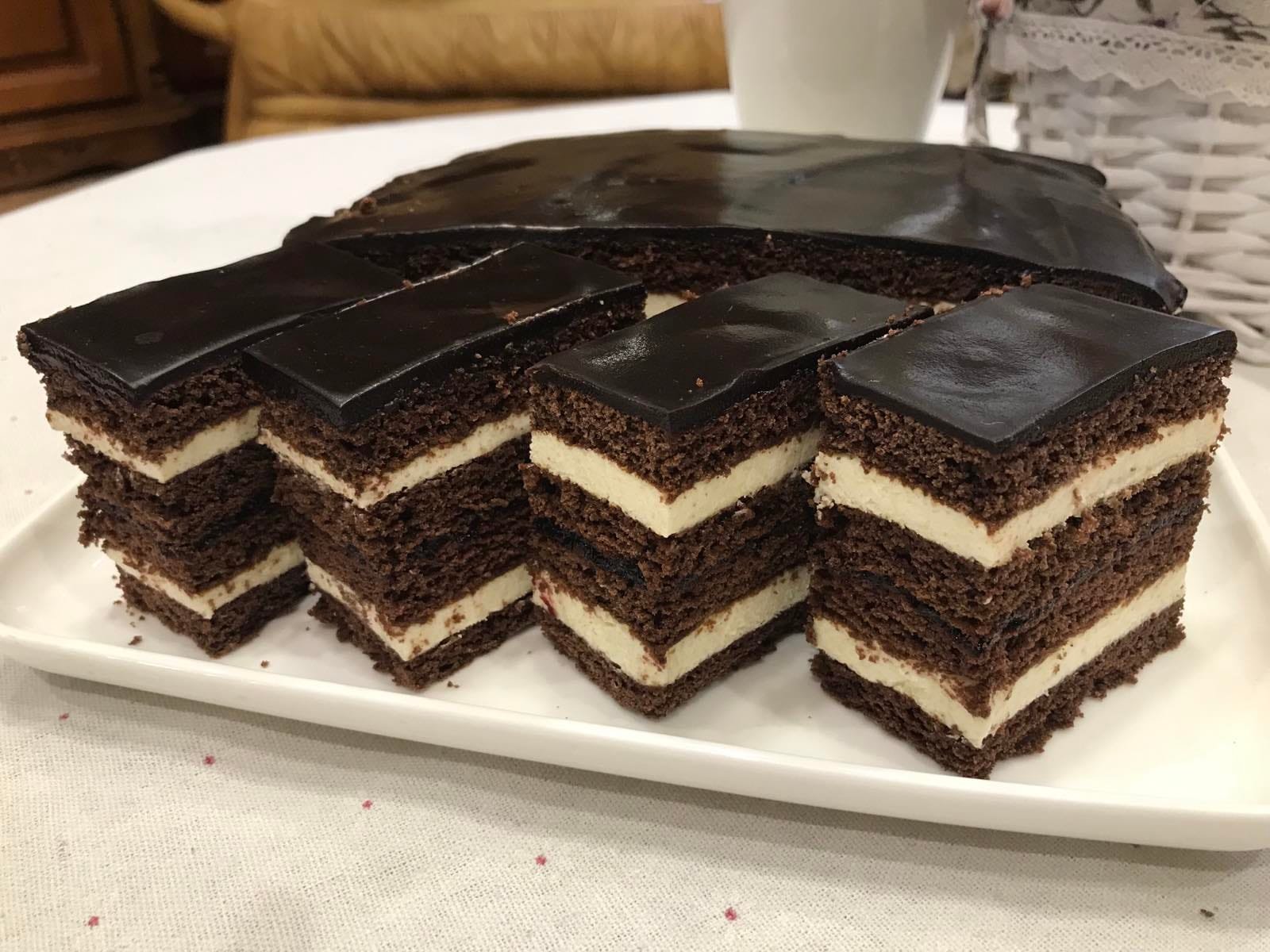 Κέικ μελιού _ Σοκολάτα με κρέμα και μαρμελάδα.