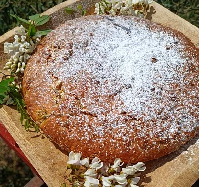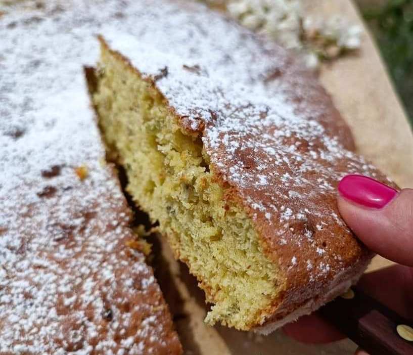 Ψήνουμε στους 180 βαθμούς για μισή ώρα περίπου. Βγάζουμε από το φούρνο, αφήνουμε να κρυώσει, πασπαλίζουμε με ζάχαρη άχνη και σερβίρουμε.