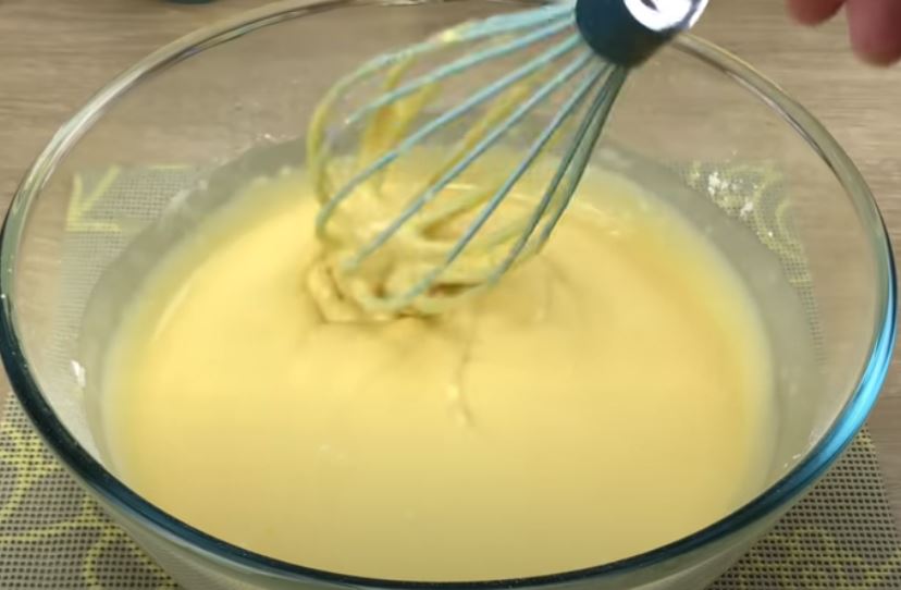Χτυπάμε 3 αυγά, βανιλίνη και 1 φλιτζάνι ζάχαρη. Προσθέστε 1 ποτήρι γάλα, και το