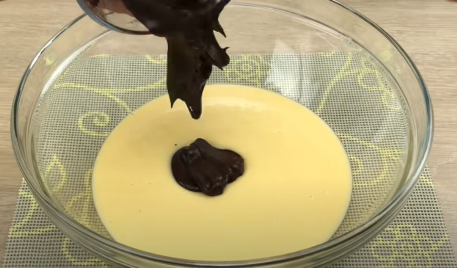 Αραιώστε 2 κουταλιές της σούπας κακάο με 3-4 κσ νερό. Προσθέστε αραιωμένο κακάο σε μέρος του μείγματος και χτυπάω με σύρμα χειρός να διαλυθεί