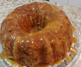 Μόλις κρυώσει η καραμέλα, χύστε την πάνω μέρος του κέικ.