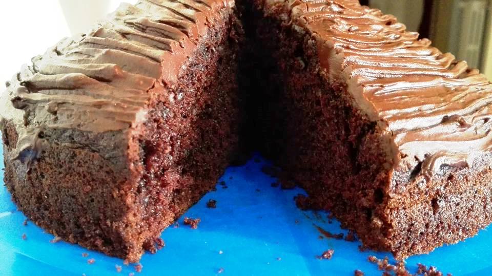 Σε ένα μπολ βάζουμε αλεύρι, ζάχαρη, κακάο, μπέικιν πάουντερ και μαγειρική σόδα. Ανακατεύουμε, προσθέτουμε τα αυγά, το λάδι, το γάλα και τα ανακατεύουμε όλα πολύ καλά, στη συνέχεια προσθέτουμε το νερό, τον καφέ και τη βανίλια.