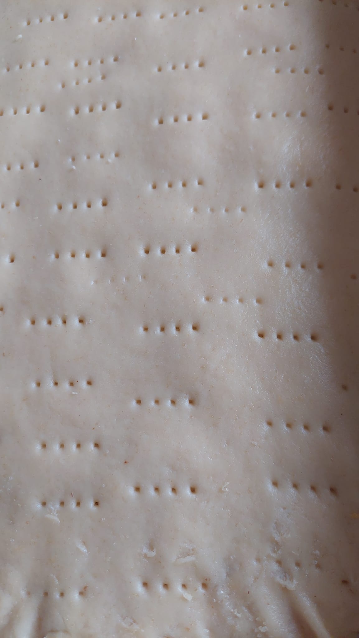 Επαναλάβετε τη διαδικασία με τις άλλες 3 κρούστες. Τρυπάμε το τελευταίο φύλλο με ένα πιρούνι.