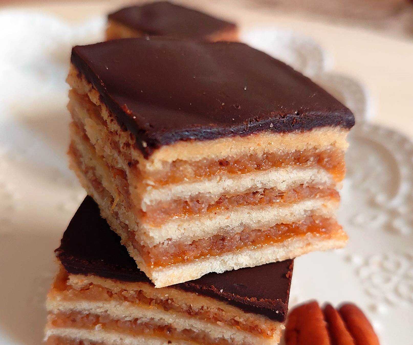 Κέικ με καρύδια και μαρμελάδα βερίκοκο.