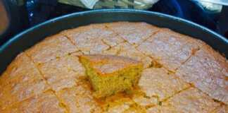Ψήνουμε το κέικ στους 180 βαθμούς, για 40 λεπτά.