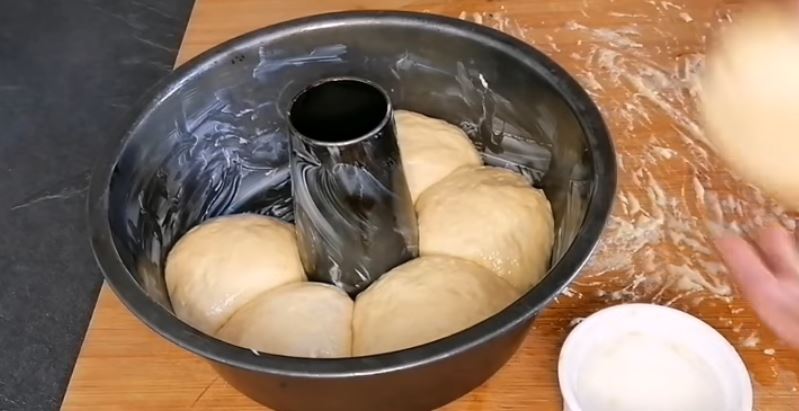 Τοποθετούμε τις μπάλες μέσα σε μια βουτυρωμένη φόρμα όπως στην φωτό
