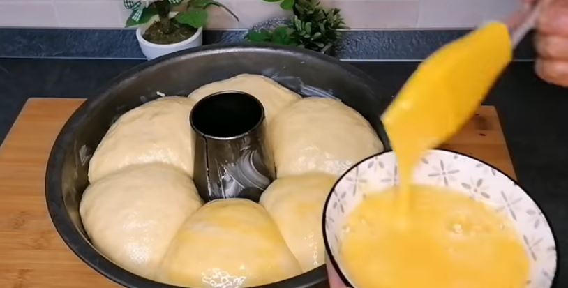 Αλείφουμε με μείγμα αυγού με γάλα.