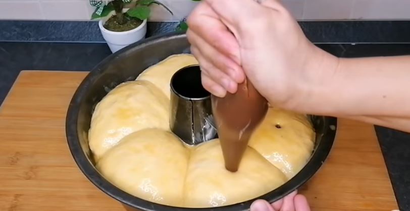 Με μια σακούλα που έχουμε κόψει την μύτη γεμίζουμε εσωτερικά τις μπάλες του κέικ με νουτέλα κρέμα σοκολάτα