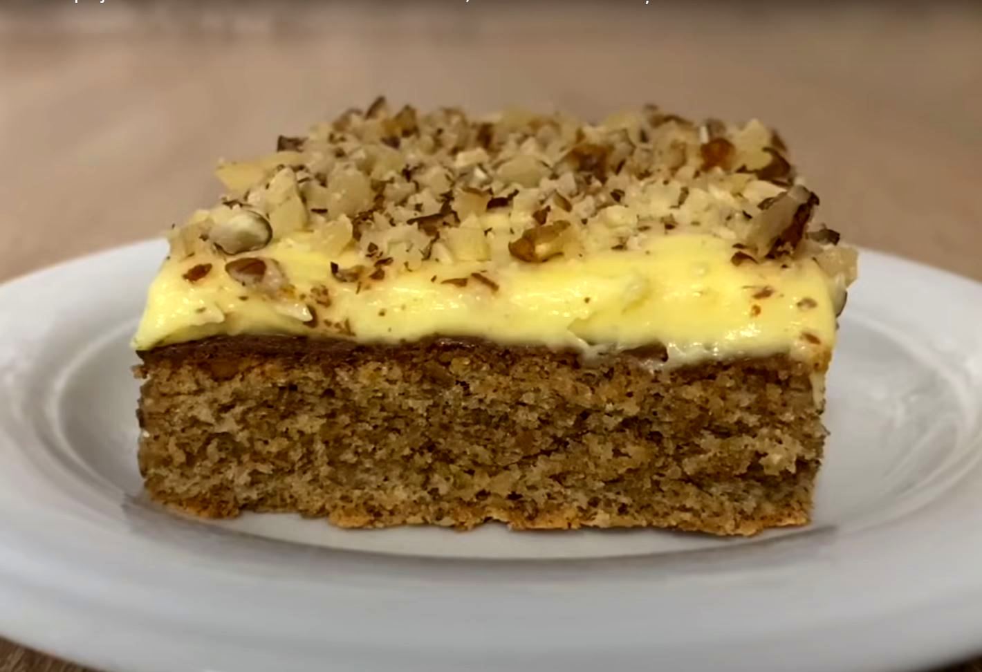 Κέικ με πολλά καρύδια, κρέμα βανίλιας και σοκολάτα