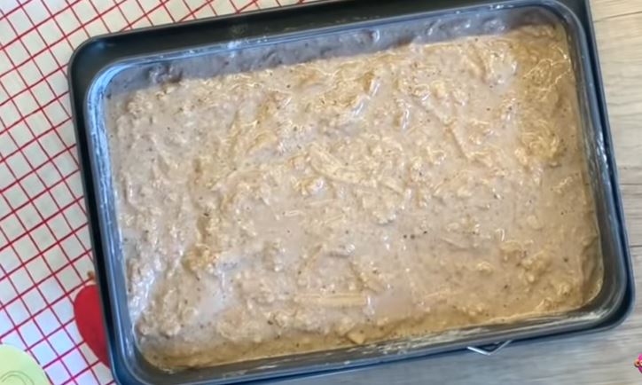 Ανακατέψτε τα πάντα ελαφρά και στη συνέχεια ρίξτε σε ένα βουτυροαλευρωμένο ταψι (τσερκι) 20 × 30 cm. Ψήνουμε στους 200 βαθμούς για περίπου 40 λεπτά.